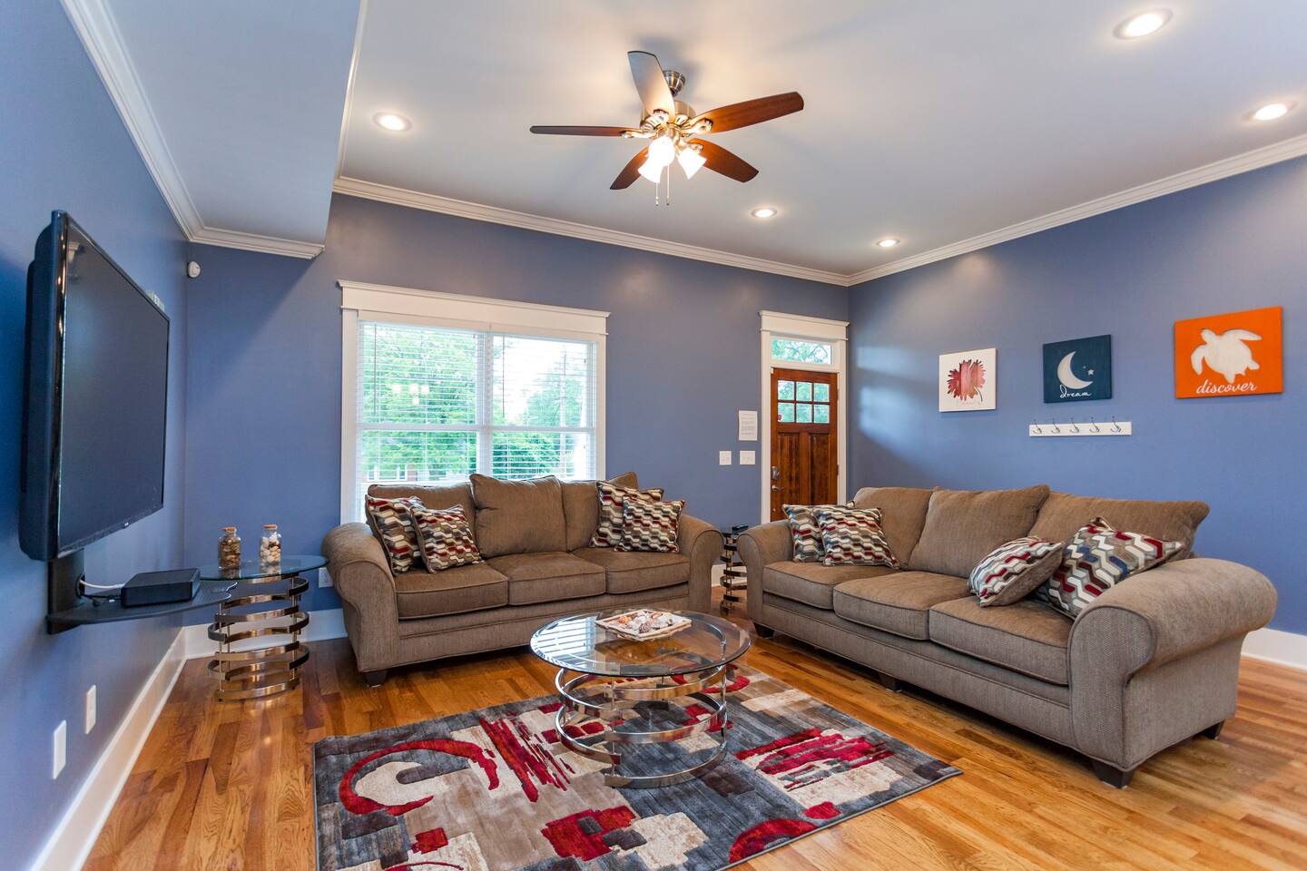 We do have multiple houses (including ones that are side by side) that can sleep a total of 12+. Please inquire to see if we can fit your group size. Welcome to Nashville Folks! This new home offers the best experience Nashville has to offer. Relax in the new upgraded kitchen. Relax and check out the Nashville skyline from our new roof deck. This new home has everything you could ask for and more. Granite, Stainless Steel, wood floors, and plenty of sleeping for all of your guests. The open floor plan gives everyone in your party plenty of space to spread out and enjoy. A 7-10 minute Uber or taxi ride will have you on Broadway. This is one of the nicest AirBnB properties in all of Nashville and we are certain you will love it. The best of the best! This home has it all - plenty of beds and baths for everyone. Large open spaces for gatherings. Rooftop Deck! Close to downtown! This home has it all and we will make sure your stay is a great one! *Rooftop deck with patio furniture *Garage for 4 Cars *Tankless water heater for unlimited showers for your large group *Wi-Fi Internet *50" HDTV in Living Room *High Quality Linens Provided *Ground floor Master Suite *Well appointed Kitchen to cook family meals (spices, condiments, and cookware) *High End Appliances *Back Patio with Charcoal Grill and Lawn Chairs Check in time is 3pm. Check out is 10am. This is new home offers the best experience Nashville has to offer for you and your guests. It has high end finishes. Granite, Stainless Steel, and the like. This home boasts a large rooftop deck with a view of downtown. The open floor plan gives everyone in your party plenty of space to spread out and enjoy. A 5-10 minute Uber or Lyft will have you on Broadway. This is one of the nicest VRBO properties in all of Nashville and we are certain you will love it.